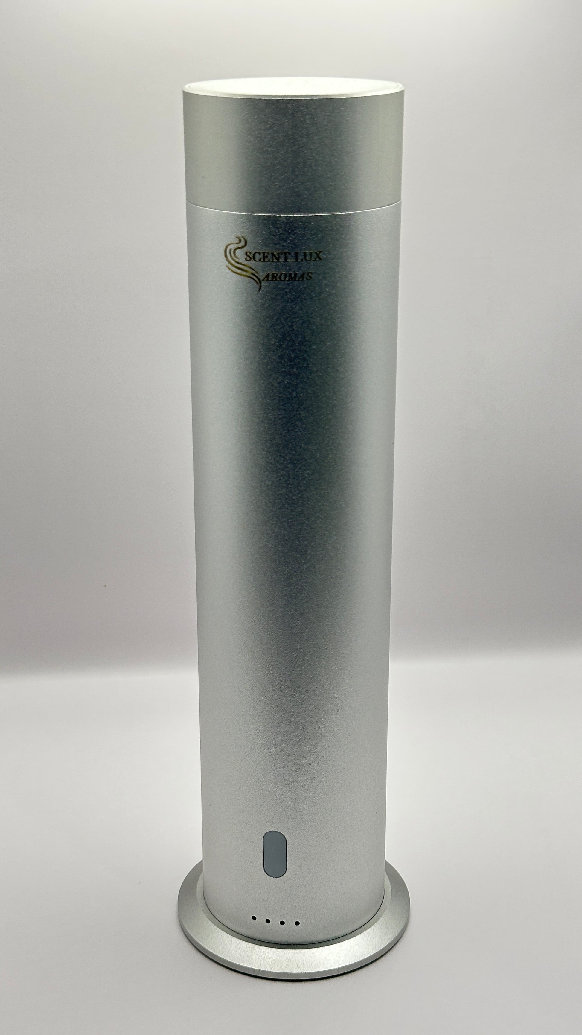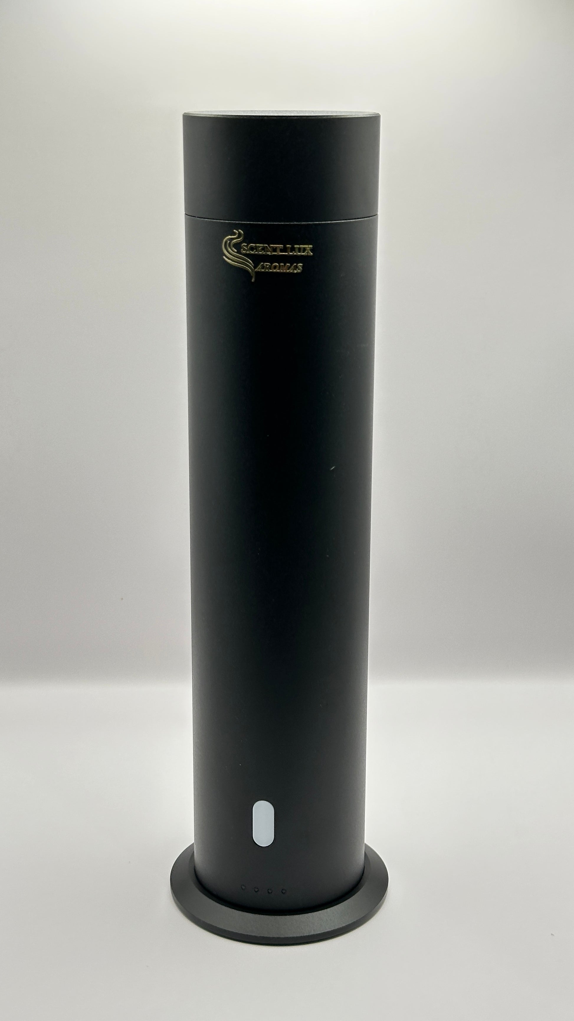 Difusor de aroma de columna táctil inteligente inalámbrico controlado por Bluetooth, nueva generación de atomizador, carcasa de material de aleación anticorrosión. Con control inteligente de botones táctiles con una cobertura de 600 pies cuadrados. , Ahorro de Energía, Funcionamiento Silencioso, Disponible en 2 colores: Negro y Plata. Se incluye enlace de descarga de App para controlar el difusor mediante smartphone con densidad de emisión, tiempo, multiprogramas. Chip inteligente para ajuste de concentración de velocidad con emisión fina. Boquilla atomizadora con punta de cadera que distribuye la fragancia de manera uniforme y permanece durante mucho tiempo.